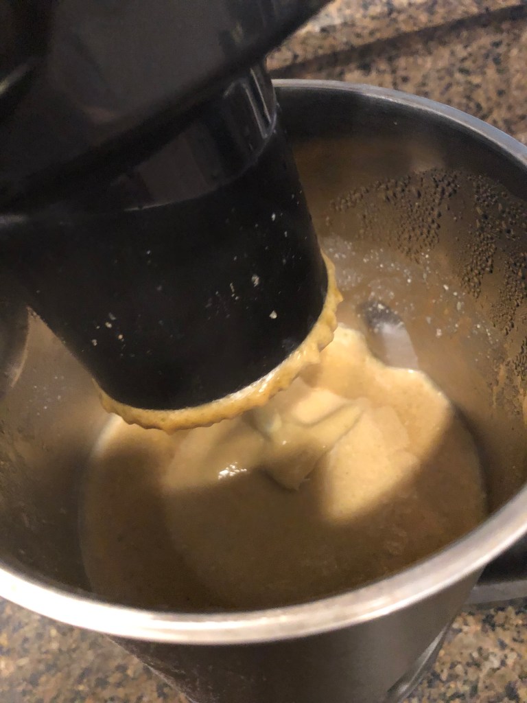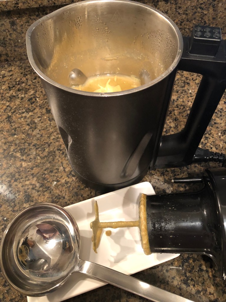 In the meantime, check on your soup. If you used the soup maker, it will alert you it’s done after 18 minutes and stay (very) hot for up to 40. You will see how thick the soup became.