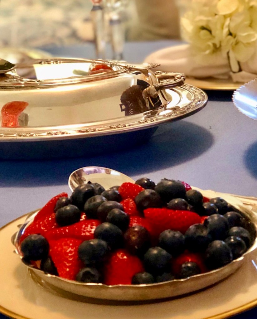 Pink champagne is fun, it matches the strawberries and is much more preferred in this house than a mimosa (I can’t do all that orange juice; too acidic). A yummy slightly spicy Bloody Mary would have been perfect as well. Everyone loves fresh fruit and once stuffed in warm flaky puff pastry, supported with a blend of creamy ricotta and goat cheese (with some basil), it’s a perfect mouthful (after three bites). I have a trick to the best scrambled eggs that if you’d like to try, I’ll tell you about below.