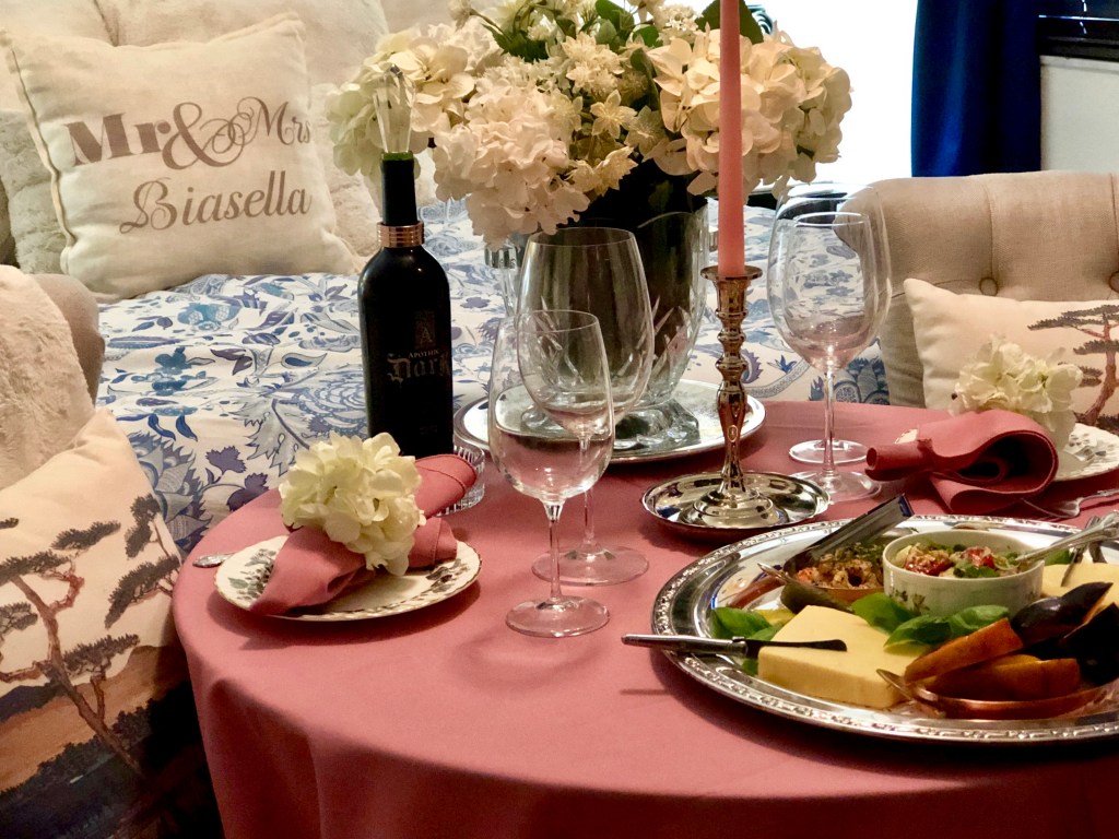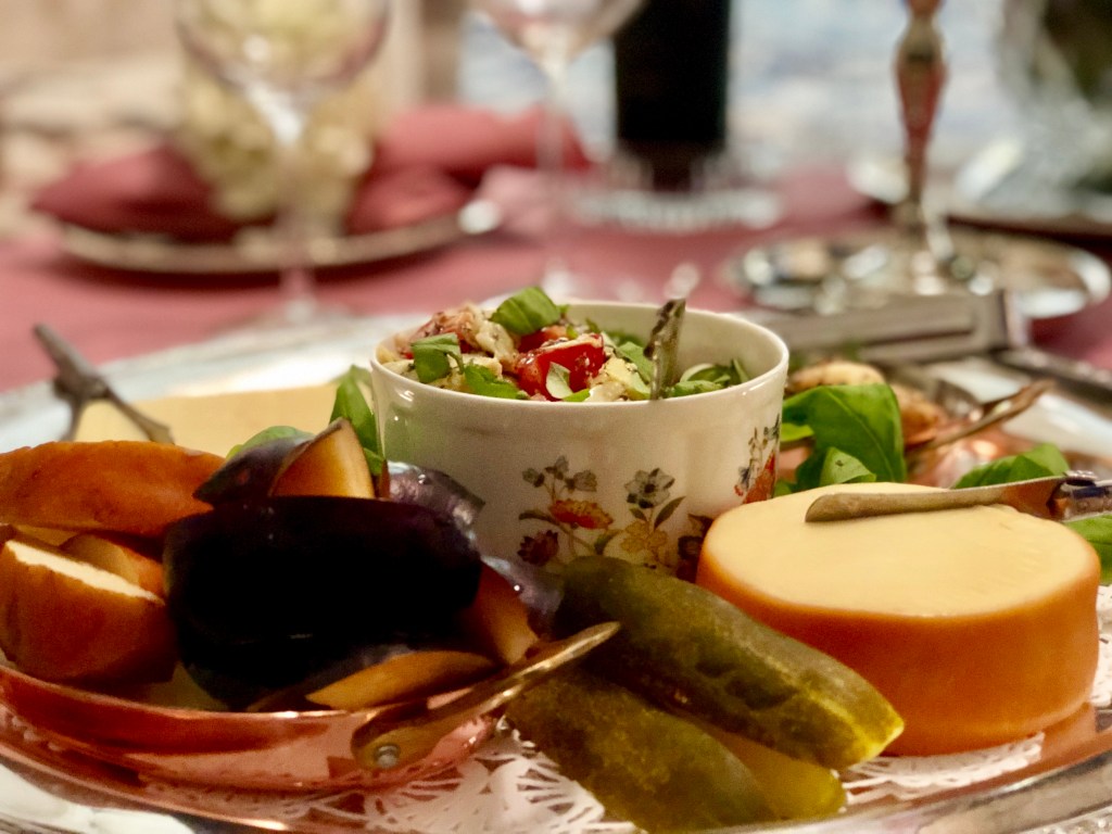 Here below, I have pictures of the table setting and actual ingredients of the tray I made this past weekend.