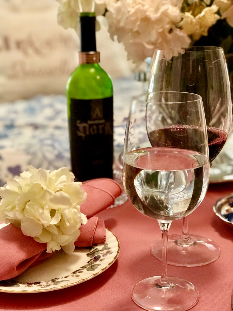 Below you will also find the table setting for this meal: Wine glasses are Riedel and Sur la Table. The china dishes are Royal Worcester. The silverware is Napoleon Bee. The tablecloth and napkins are from Bed, Bath & Beyond. The napkin rings are Pier 1. The crystal is Waterford. The silver is heirloom.