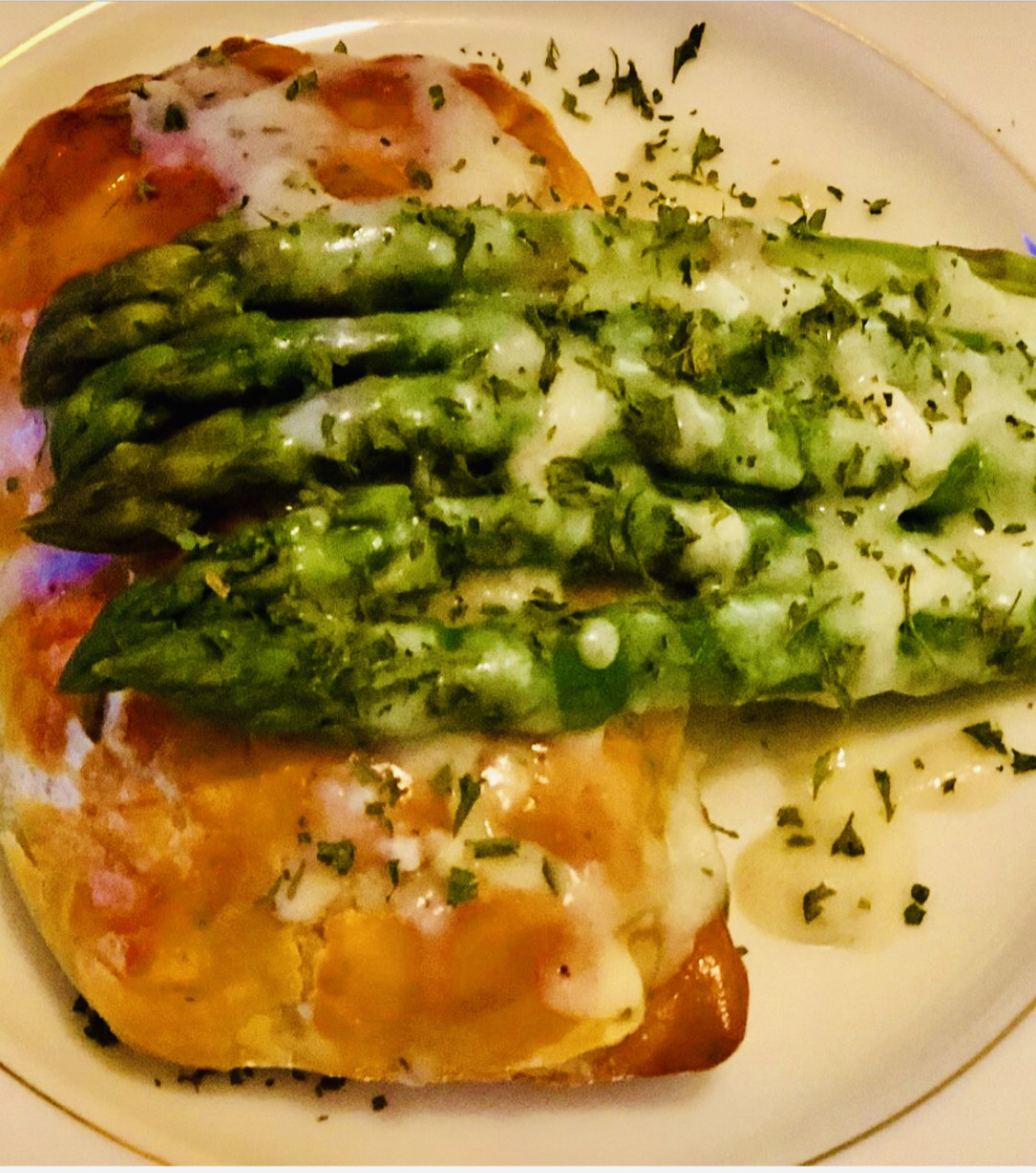 In this case I added some thick asparagus spears and a béchamel sauce (very easy to make), which I added some tarragon to.