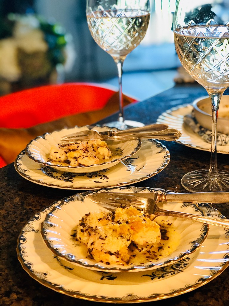 That being said… This was not a hard dish. And much like taking a shower, putting on makeup, painting your nails, making the bed… Finding a reason to break out the china, use the sterling, drink from the crystal – it’s as much a help to mental health as the walk you take hand-in-hand, reassuring yourselves it’s going to be okay – can possibly get.