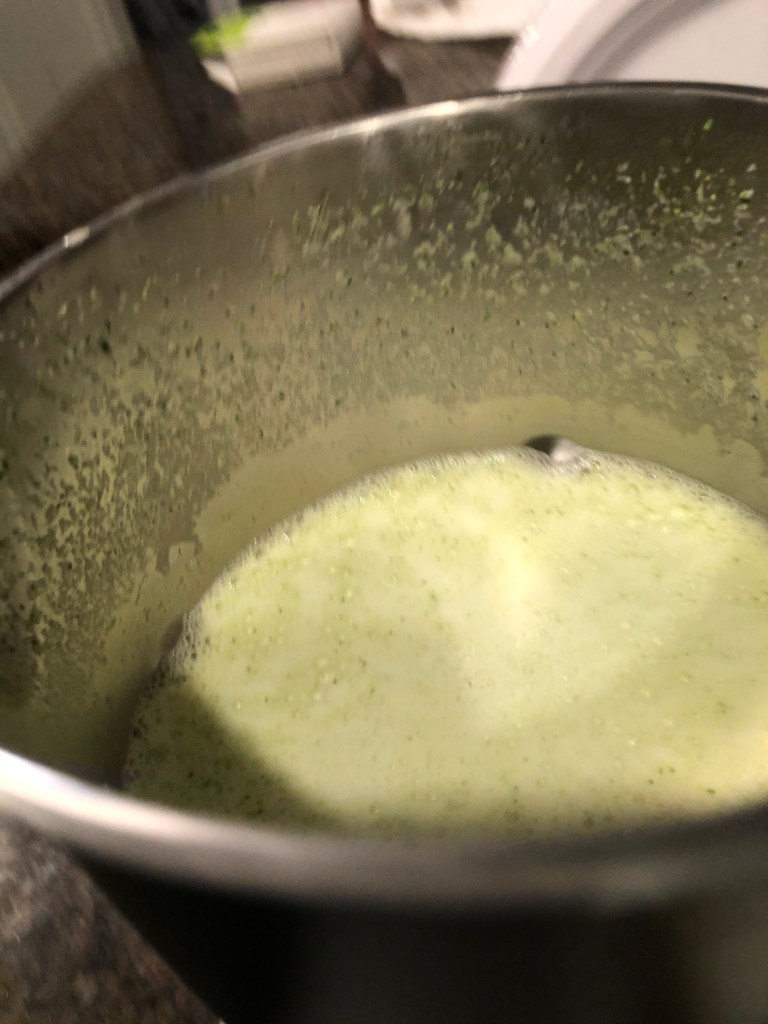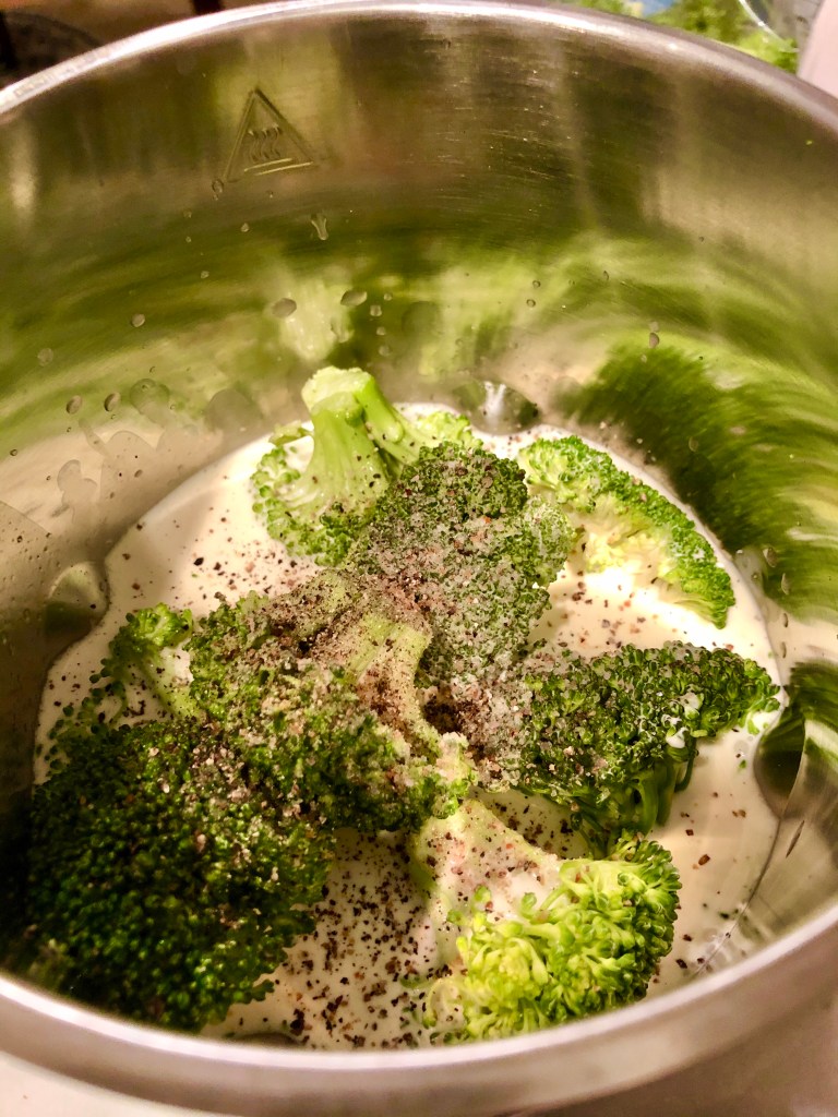 Empty your broccoli into a stock pot or, if you have it (see other soup posts for link to item) a soup maker, add the whipping cream and the bone broth. You will need as much liquid as to cover the broccoli completely. Adding more if needed while cooking (2 parts broth, one part HWC – you only need the HWC to make it creamy so, use your best judgement based on how much soup you’re making; you can always add more).