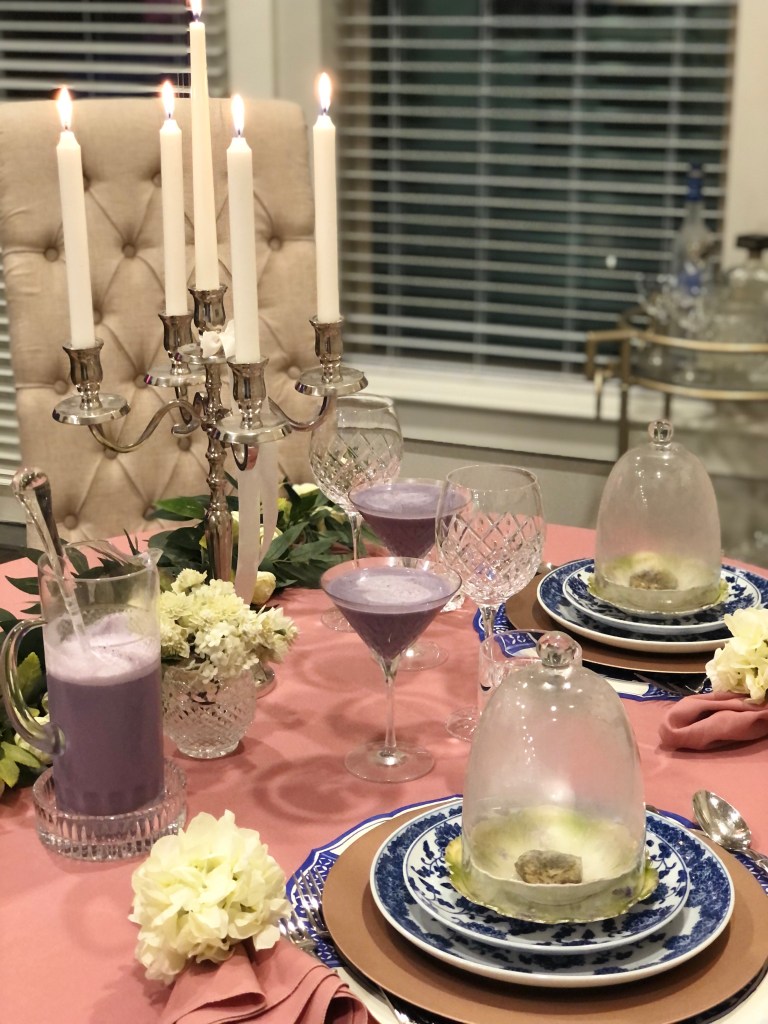 I set the table to have pink, blue and white… It was romantic and the taste was like dessert. It felt special and was so gorgeous to look at.