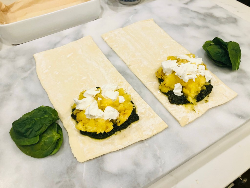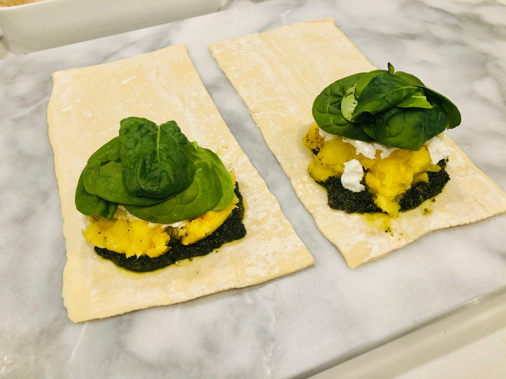 While those steam (or roast) take your puff pastry out of the freezer.