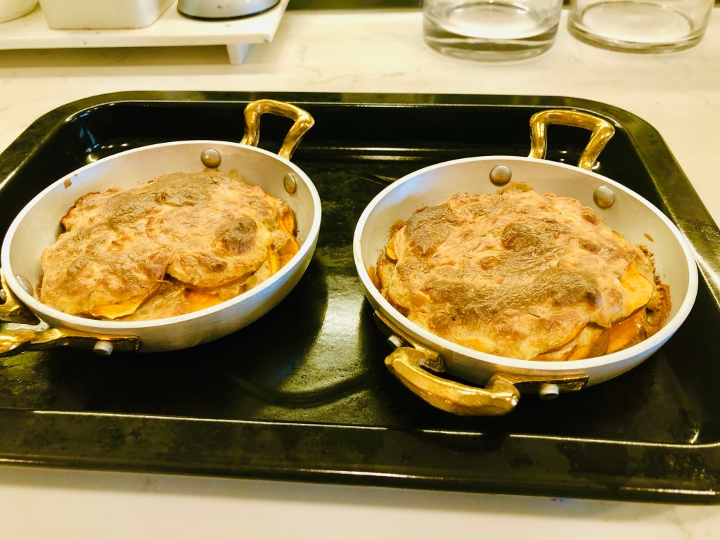 The tops will get very brown which I liked (it is not burnt, it’s just the color) however, if you don’t, leave the casserole(s) covered for at least half of the cooking time and then remove the foil so it becomes less dark.