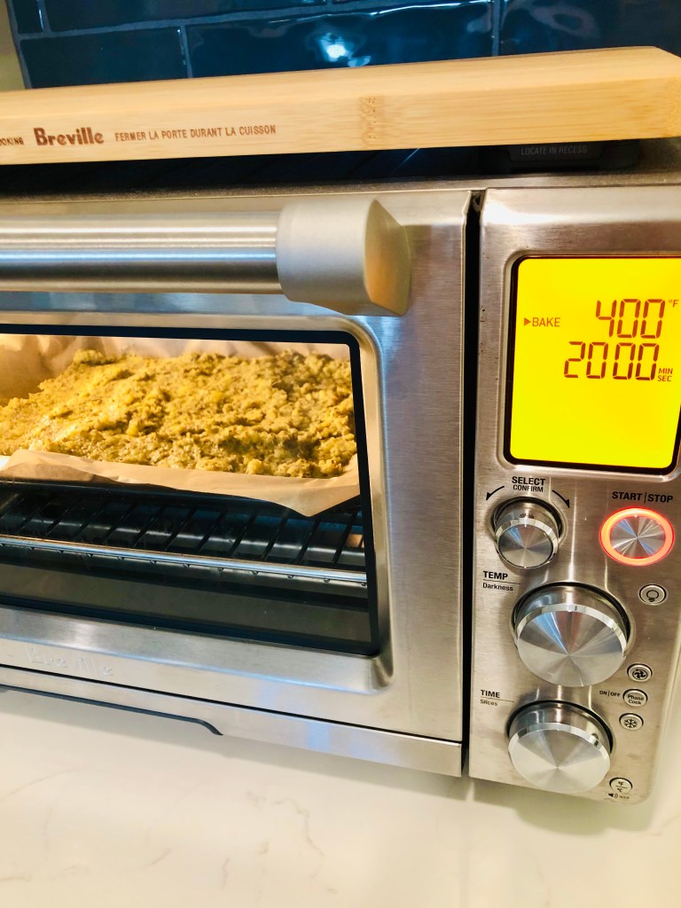After everything is cooled, cut down the middle or if you used a larger cookie sheet than I did, cut for as many people as you’re serving.