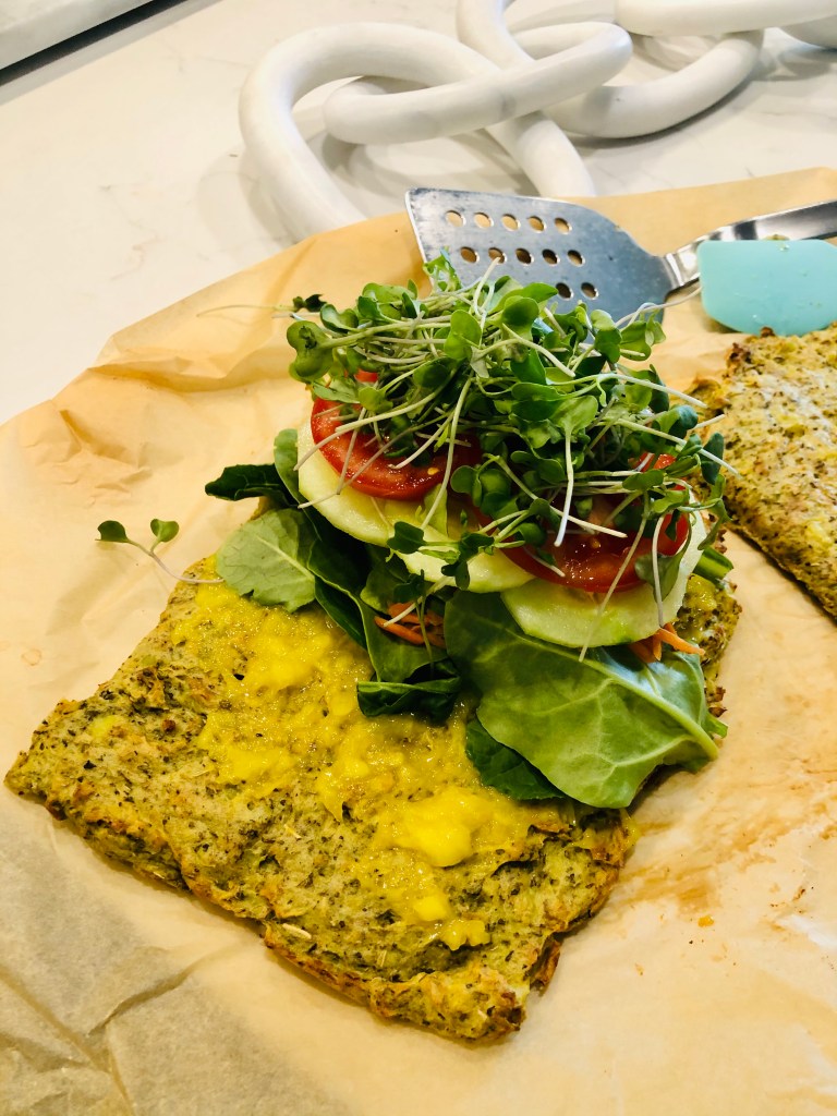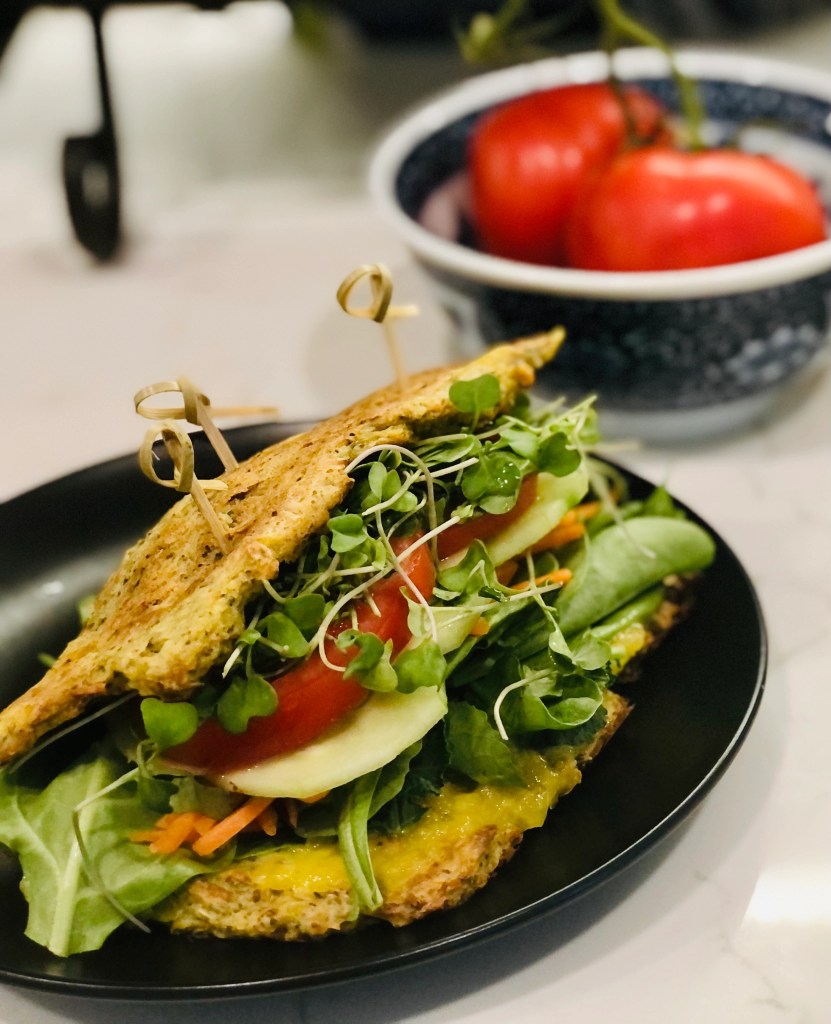 In this case, I wanted a sandwich and gluten is out of the question. Gluten-free bread does exist but it’s often made with some questionable ingredients. Since potatoes are so healing, and he already has a similar recipe in his book (though with different ingredients but same premise), I thought why not make a potato-bread type of sandwich. Fill it with all the crunchy yummy things I get to eat. And it was delicious!