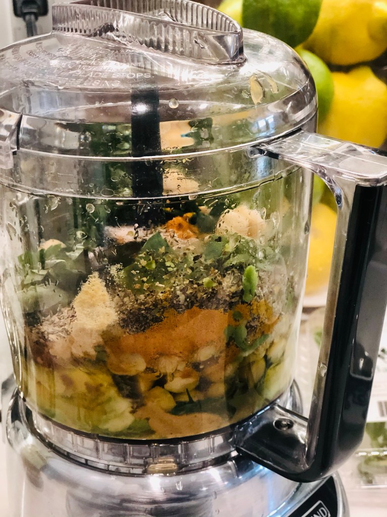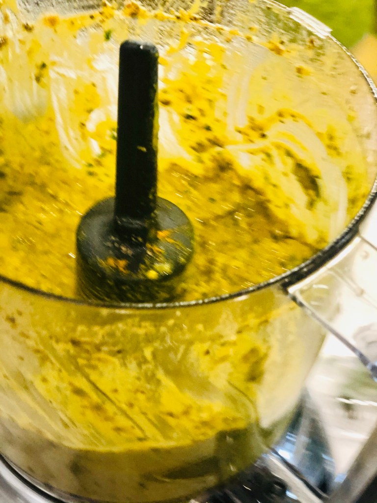 Start by prepping the sauce for the veggies. Take the following measurements and place all in the food processor or blender at once These measurements are for two/three people: