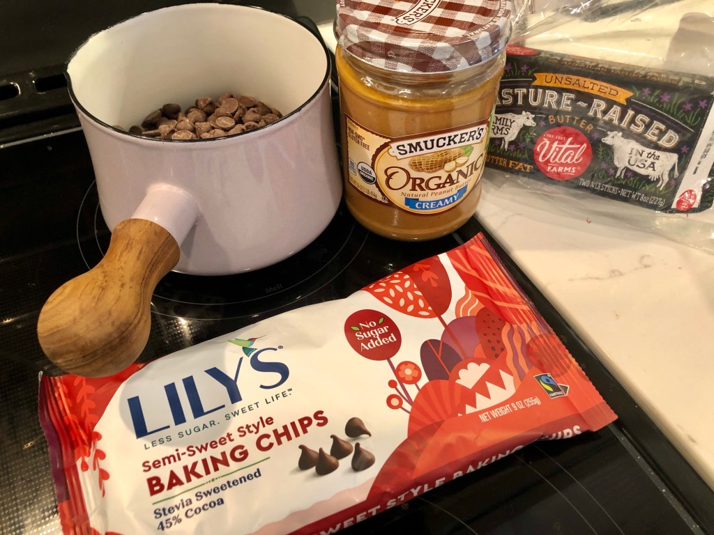 * Sugar Free Chocolate Chips (the best brand is Lily’s – we use semi-sweet and milk chocolate bags typically)