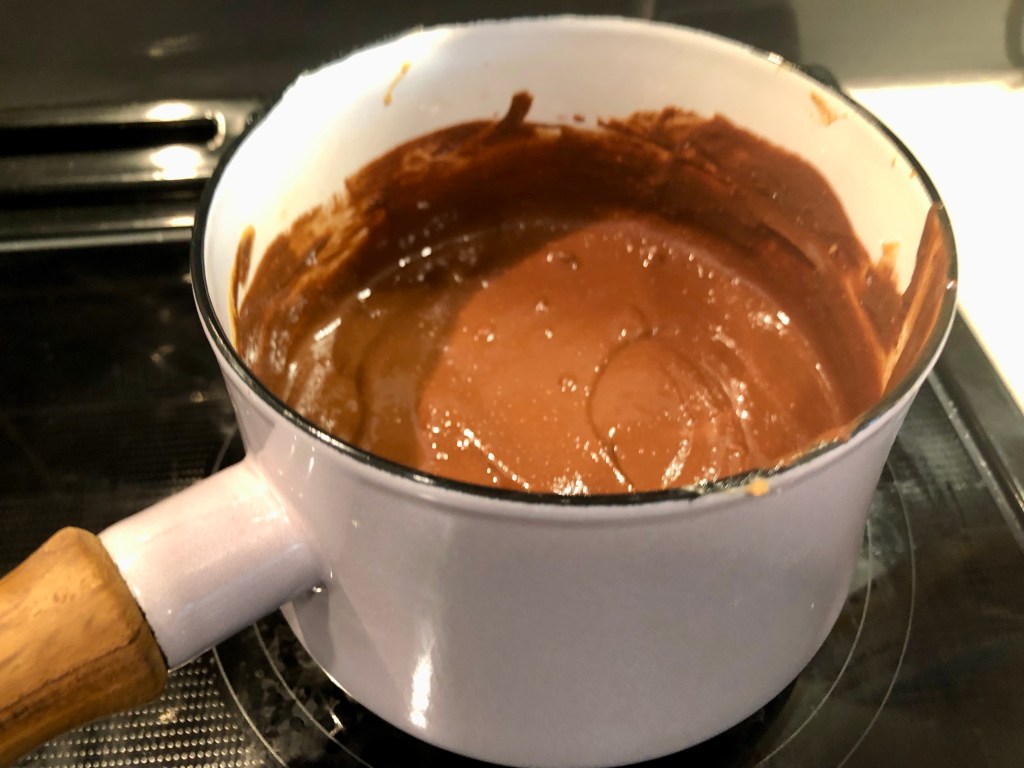Keep it on low until the cakes are done so that it doesn’t harden. At this point, taste and see if you want to add any salt, more chocolate or peanut butter.