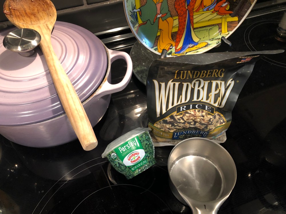 While this cooks / boils, go ahead and start making your rice. You can choose whichever rice you prefer (black rice would have been nice, for example) but we find that wild rice holds up the best against creamy soups.