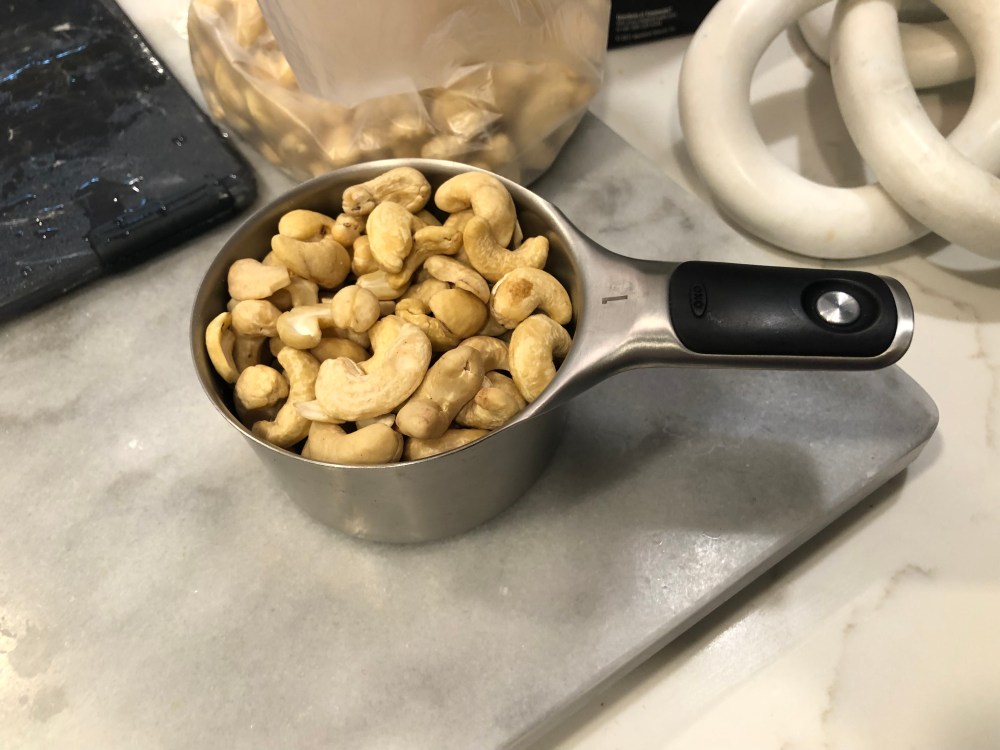 Take a cup of cashews and add that to the soup maker (two cups total if using conventional method).