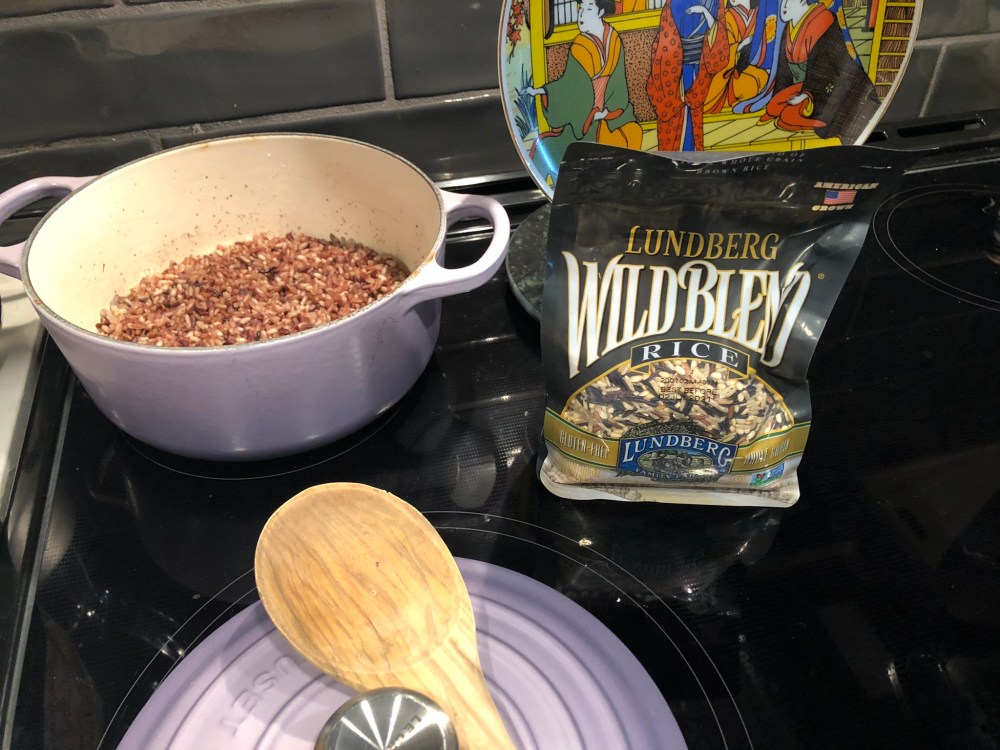 Regardless, prepare as it states on the bag – for this brand it was a cup and 1/3rd of water to a cup of rice. Boil and then simmer for 45 mins.