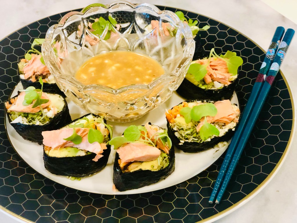 * Wild Sockeye Salmon (make sure this is pre-cooked by you or the store before plating over the sushi) – Alternative would be Smoked Salmon