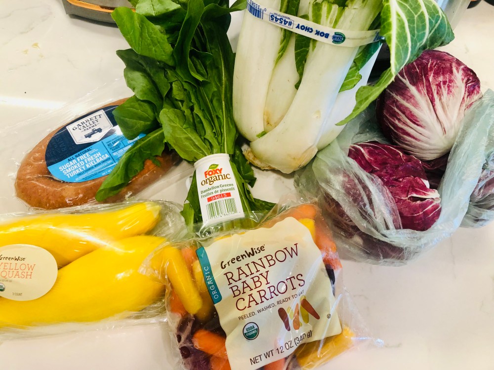 - Veggies of Choice (I used yellow squash, carrots, bok choy and dandelion greens)