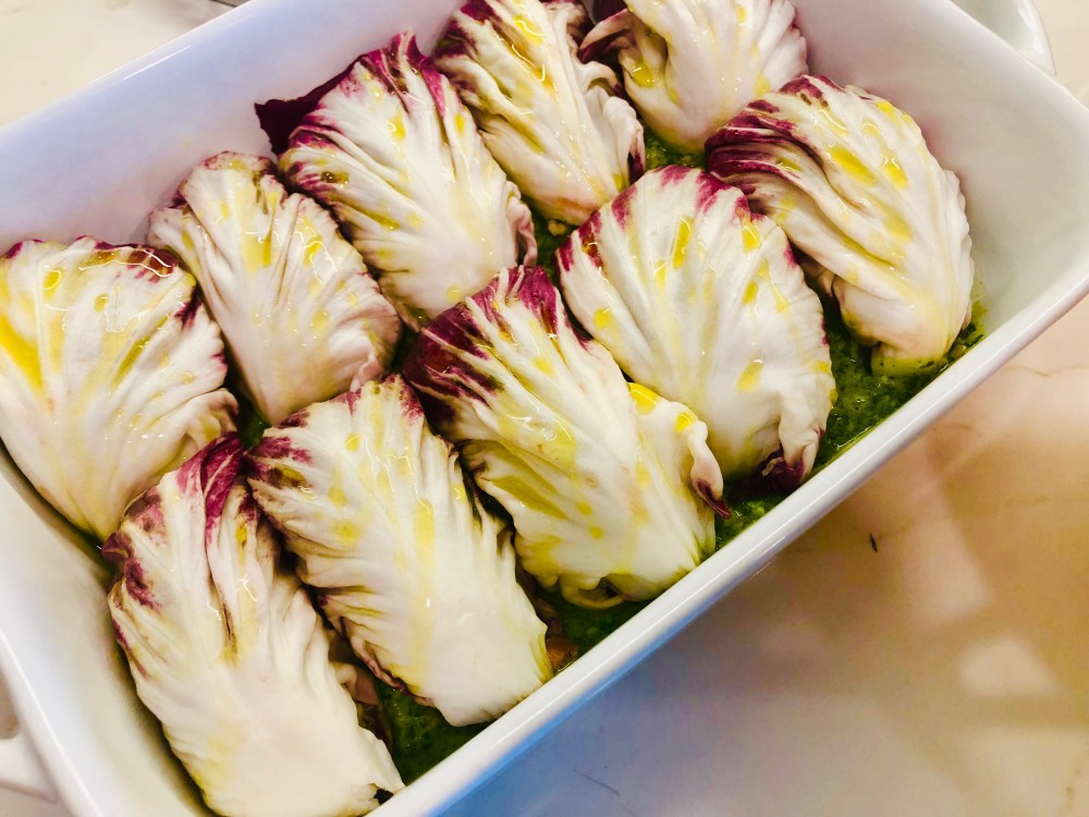 - Radicchio (plan for either size however, in a casserole dish, the small round works best)