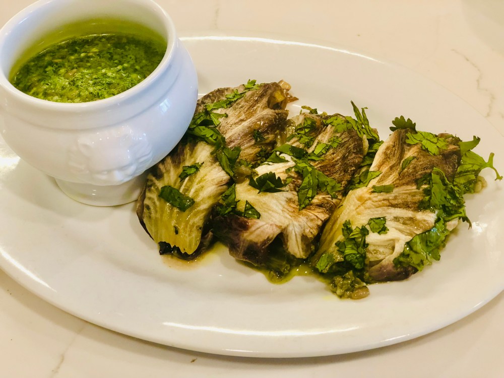 For my husband, he wanted just the stuffed leaves. I placed them down on a small individual platter with the rest of the pesto and served it simply.