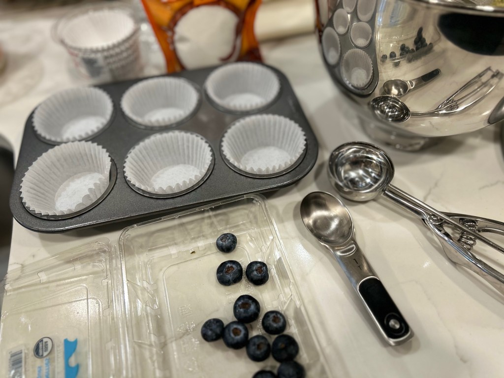 * 1 1/3 Cup of Small Blueberries (save enough so you have one for the top of each muffin before baking) / 1 1/2 Cup Large Blueberries (honestly, however many you please!)